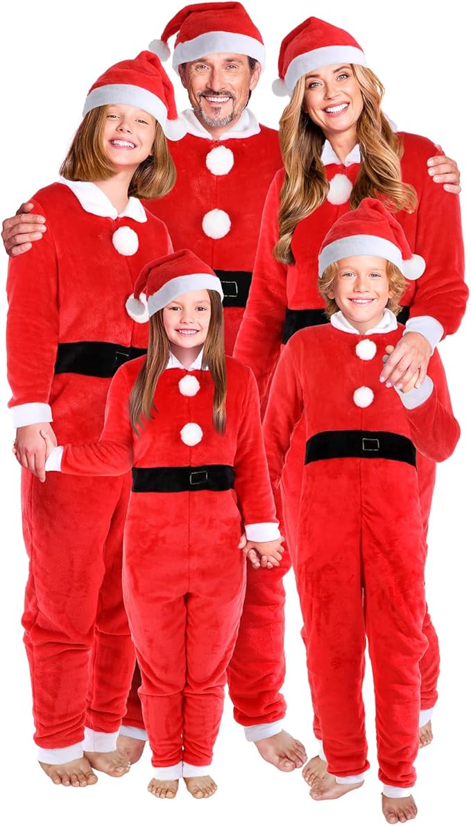 Shinymoon Matching Family Christmas Pajama Sets One-Pieces Flannel Santa Claus Costume for Family With Hat